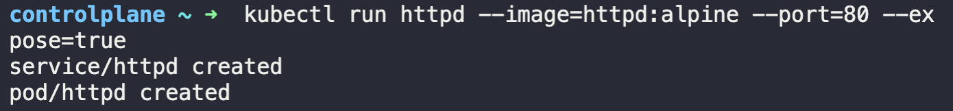 파드와 연관된 ClusterIP를 만드려면 —expose 옵션에 true를 주라고 되어있습니다. —port도 필수라고 하네요.