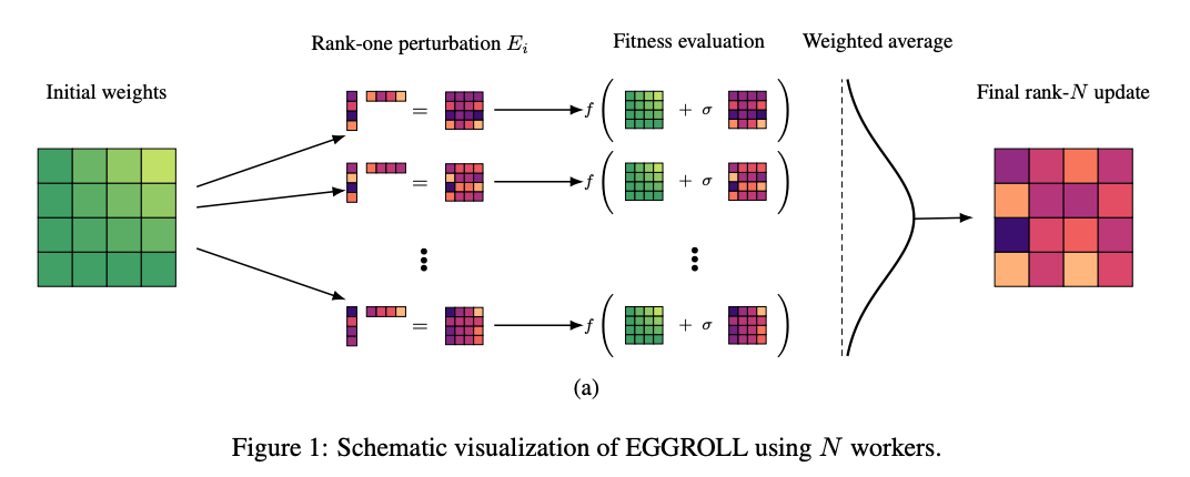 EGGROLL은 그동안 메모리 문제로 불가능하다고 여겨졌던 '거대 모델의 진화적 학습'을 저랭크 섭동이라는 아이디어로 현실화했습니다 .