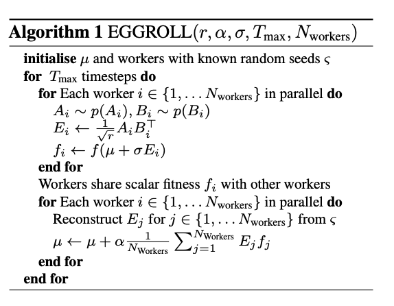 EGGROLL 알고리즘의 구체적인 작동 원리를 설명합니다.