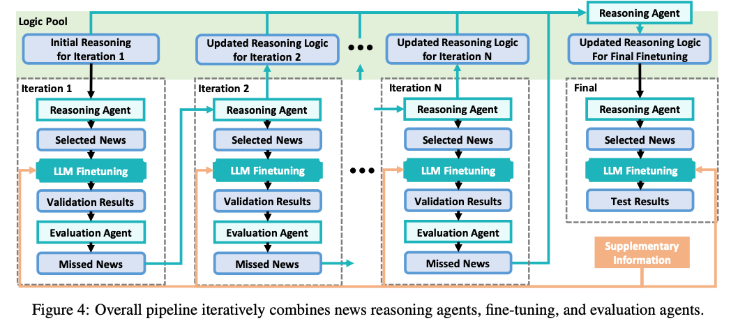 연구팀은 인간과 유사한 고급 추론 능력을 가진 LLM 에이전트를 사용해 동적이고 효과적인 뉴스 선별을 수행했습니다. 이 에이전트들은 소수의 예시 학습을 통해 시계열 변동에 영향을 미치는 요인들에 대한 인간의 추론을 모방하는 논리적 시나리오를 기반으로 전략을 조정합니다.