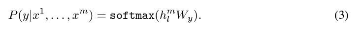 3. 수식 (3)과 같이 softmax 함수를 적용하여 레이블 y의 확률을 계산합니다.