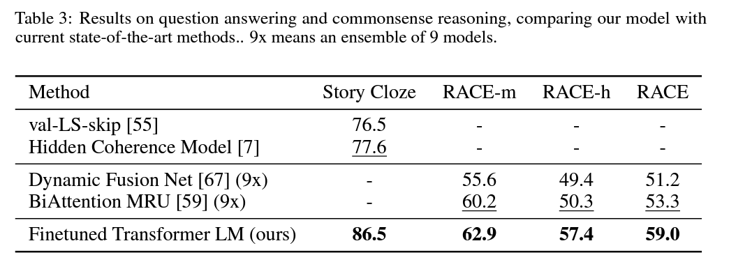 - RACE 데이터셋과 Story Cloze Test를 사용하여 평가했습니다.