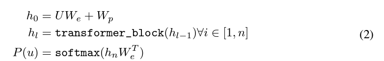 - Byte pair encoding (BPE) 어휘집과 residual, embedding, attention dropouts을 사용했으며, L2 regularization과 Gaussian Error Linear Unit (GELU) 활성화 함수를 사용했습니다.
