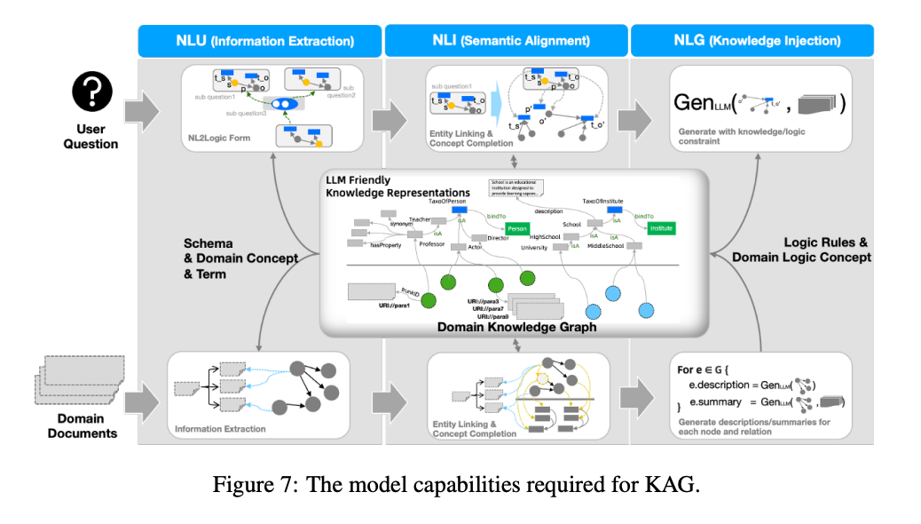 - KAG는 Natural Language Understanding, Natural Language Inference, 그리고 Natural Language Generation을 통해 각 기능 모듈의 성능을 향상시킨다.