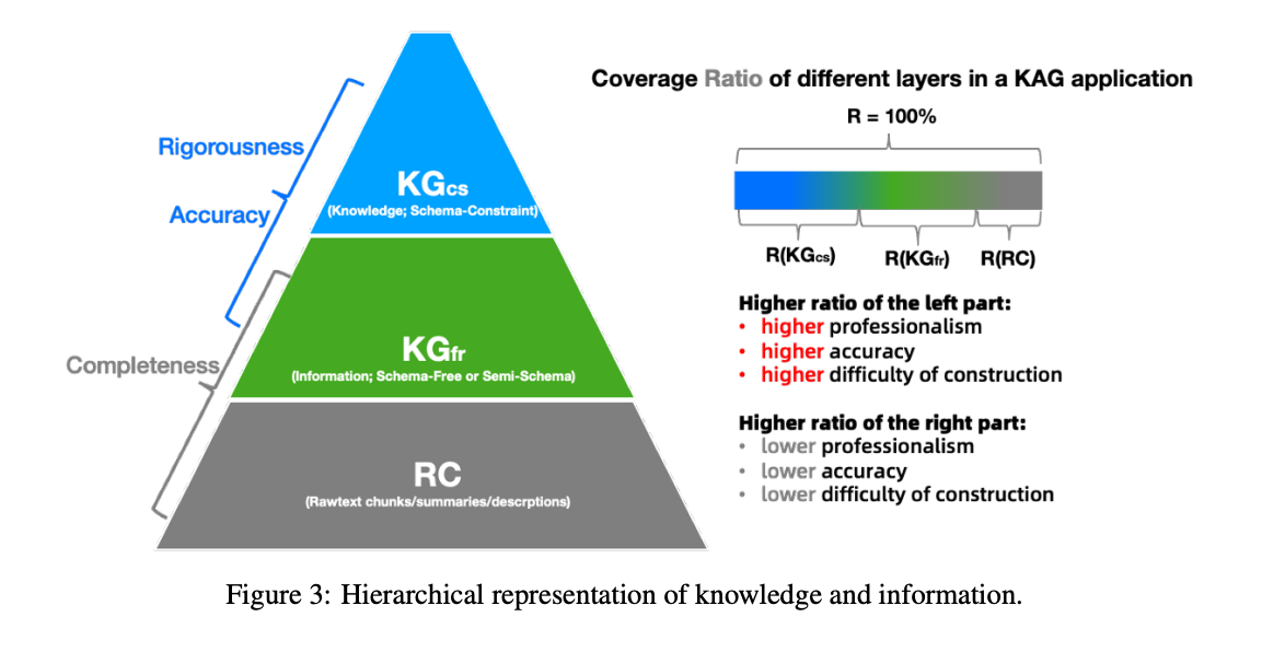 - KG 지식 계층은 도메인 스키마 제약을 준수하며 요약, 통합 및 평가된 도메인 지식을 나타낸다.