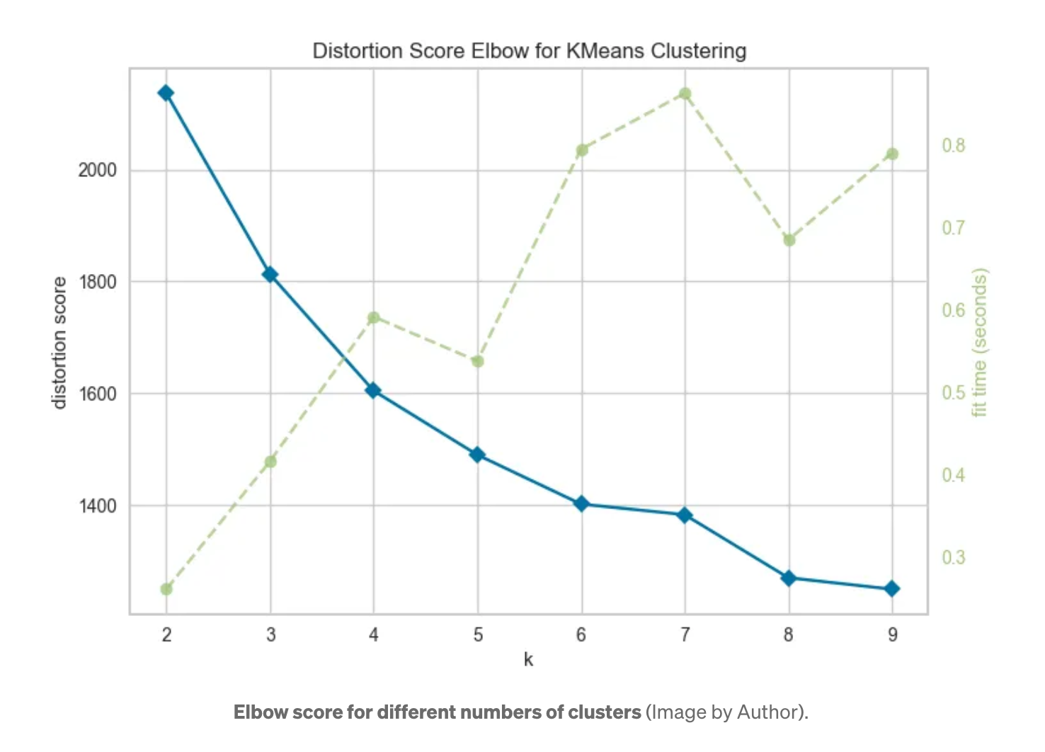 다양한 클러스터 수에 대한 엘보 점수 그래프를 그려 본 후 클러스터 수로 k=5를 선택합니다.