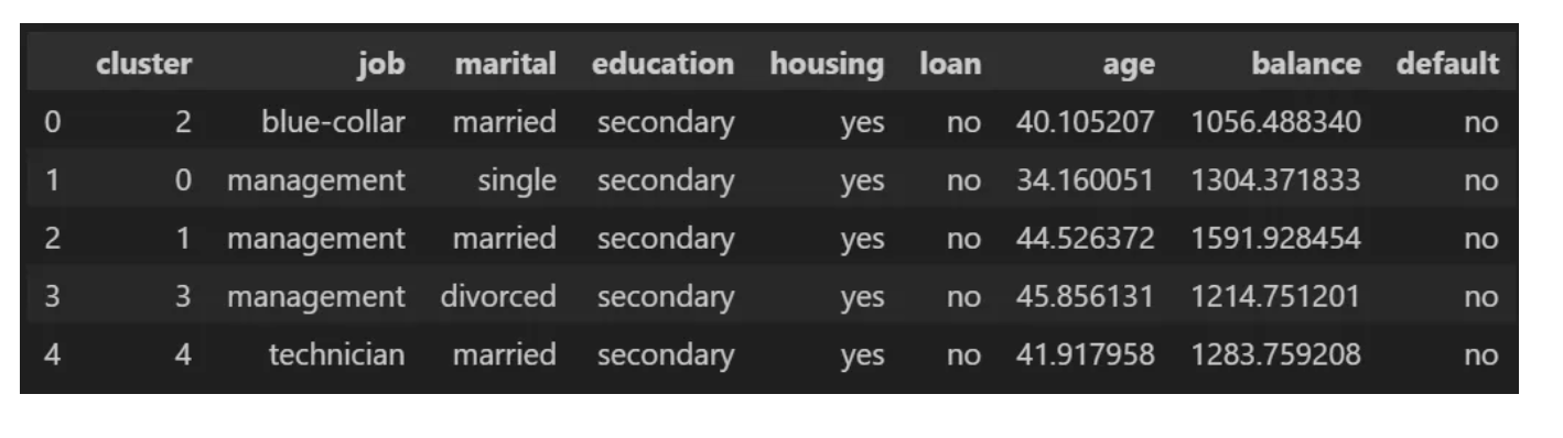 이 결과는 현실과 사회적 측면에 부합합니다. 또한 매우 구체적인 고객 프로필을 보여줍니다. 이것이 바로 데이터 과학의 마법입니다.