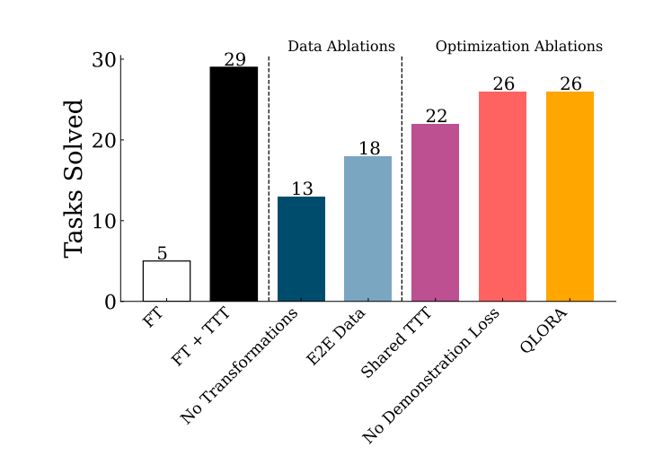 • 그러나 TTT를 적용한 경우, 신경망 방식이 프로그램 생성 모델이 해결한 작업의 73.5%를 해결