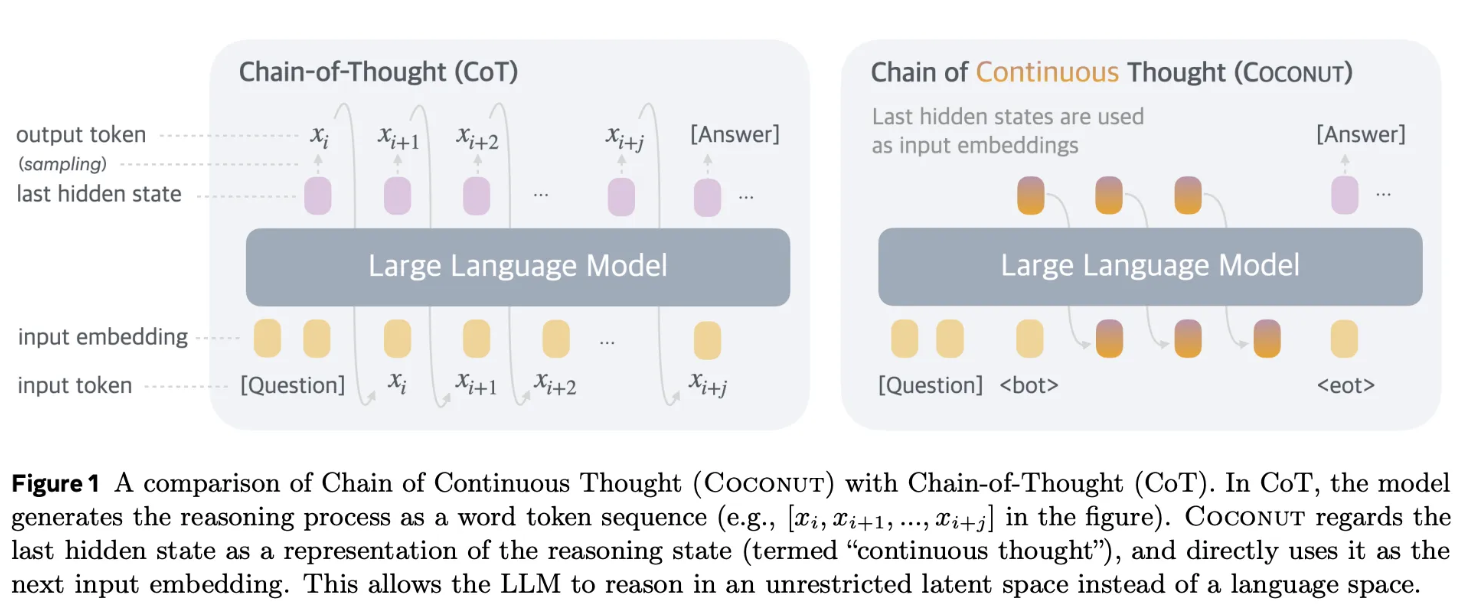 - LLM이 일반적으로 chain-of-thought (CoT)를 사용할 때, “언어 공간"에서만 추론 과정을 표현할 수 있다.